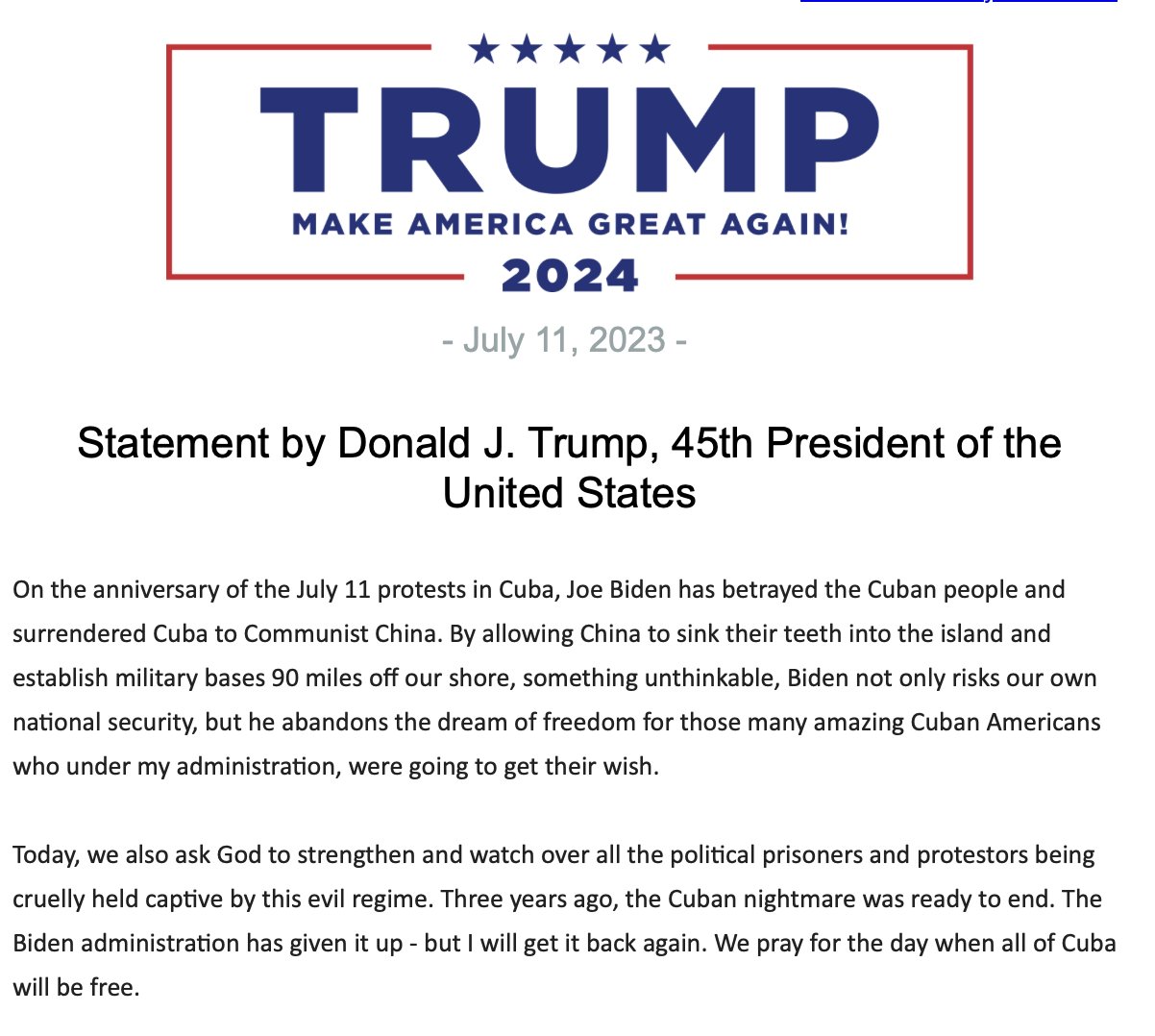 Team Trump (Text TRUMP to 88022) on X: “Statement by Donald J